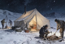 或许只有脊背向斜的第四纪能懂,这陡峭洁白怎样缓慢地倾斜。群峰在图纸上缓慢生长,而勘探者把磁力仪的震颤,译成冰河破折的喃喃...