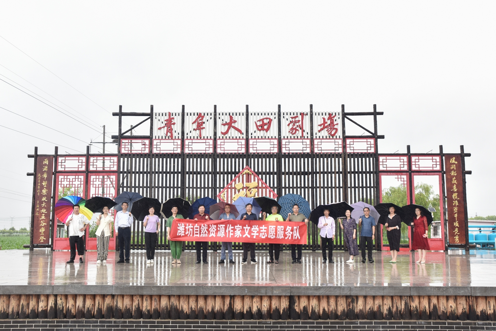 7月20日,中国自然资源作家山东潍坊文学志愿服务队,冒雨来到山东省昌邑市柳疃镇青阜村,观摩青阜农业综合体项目,了解盐碱地高效利用、生态农业、农文旅一体化发展等情况,并围绕新时代三农题材的乡土文学创作开展研讨。